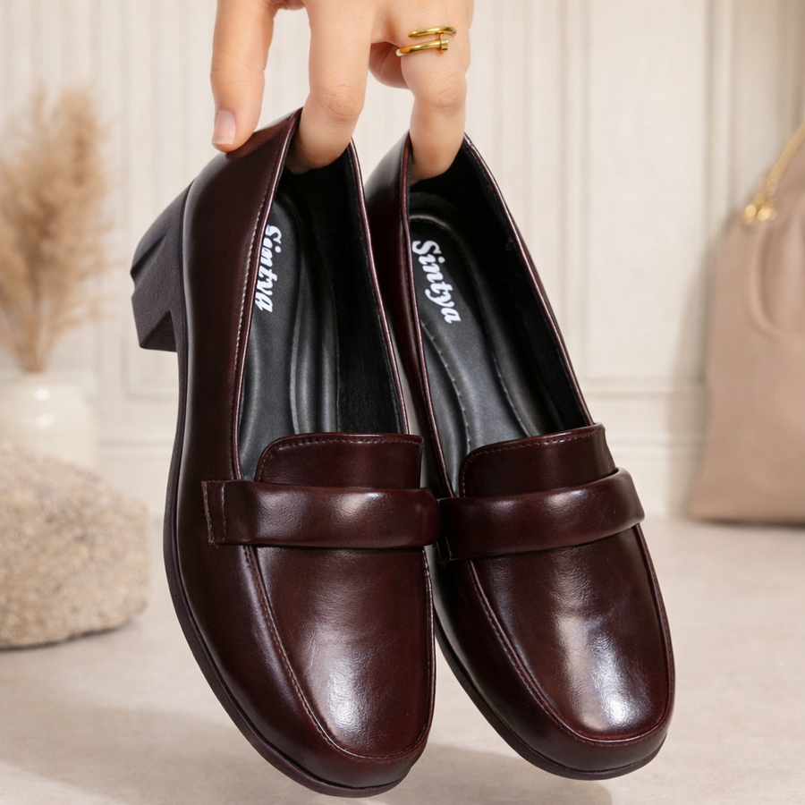 حذاء لوفر أنيق مصنوع من جلد نبا إيطالي نصف لامع، بتصميم كلاسيكي يجمع بين الفخامة والراحة. مزود بكعب طبي بارتفاع 3 سم وفرش داخلي طبي يمنح دعماً مريحاً للقدم طوال اليوم. متوفر بمقاسات من 37