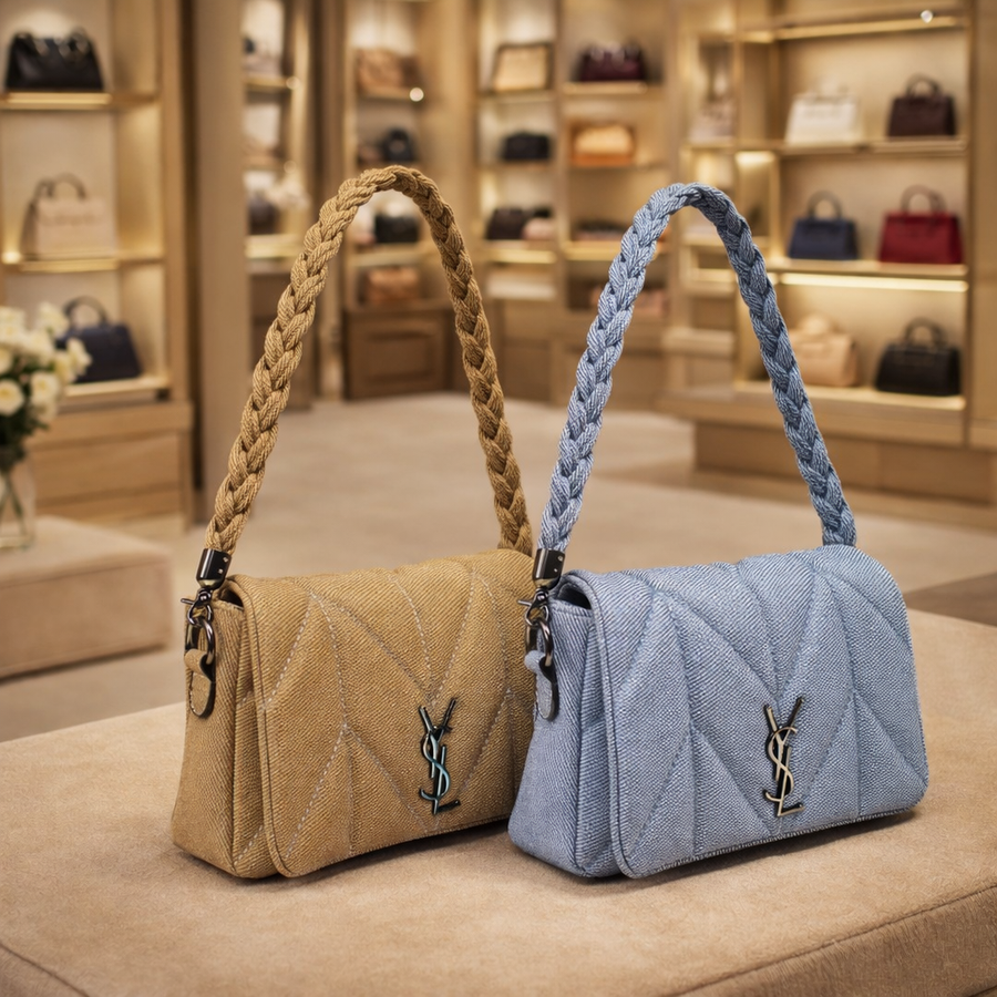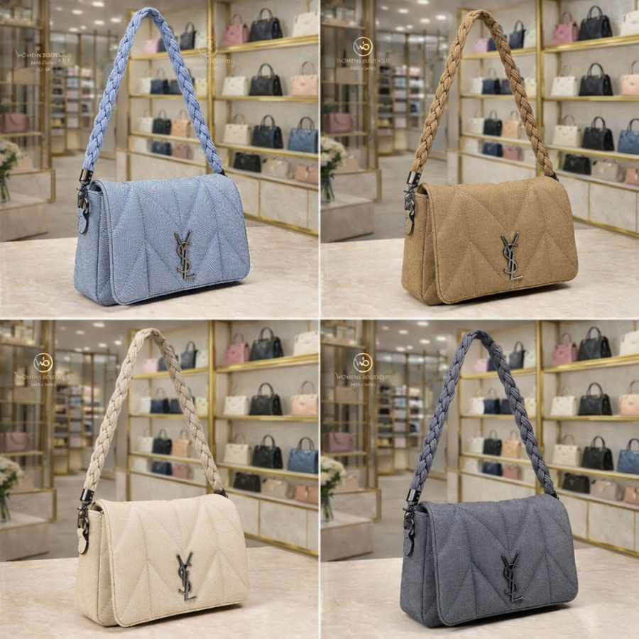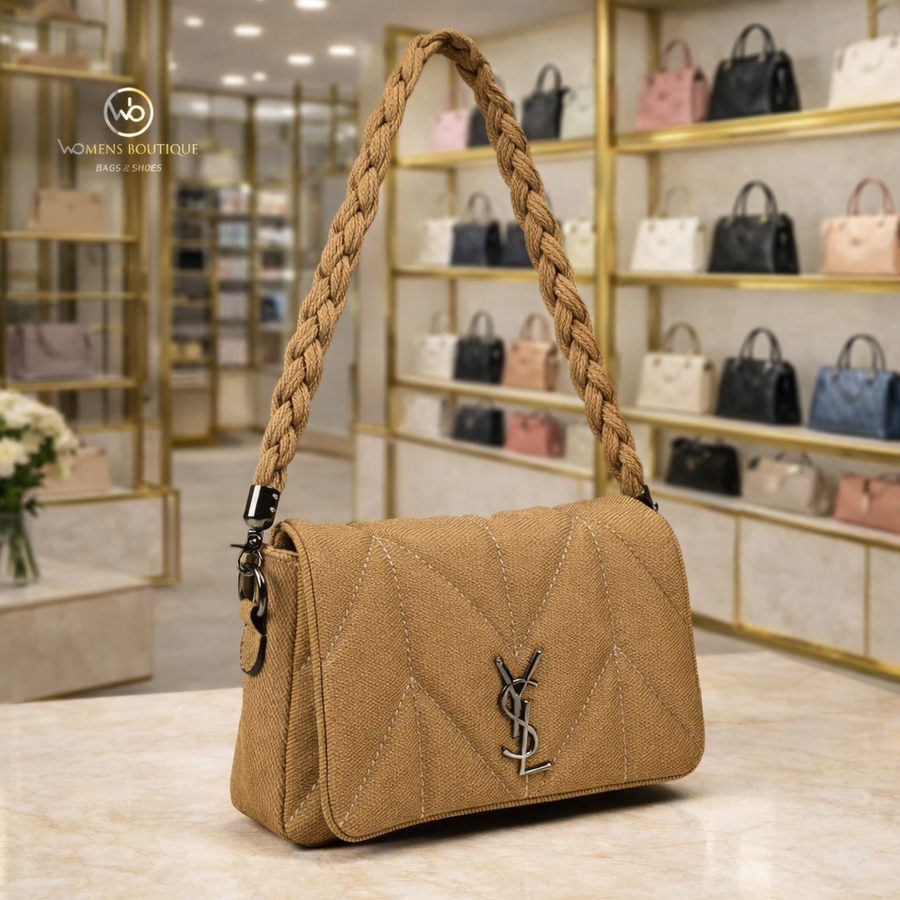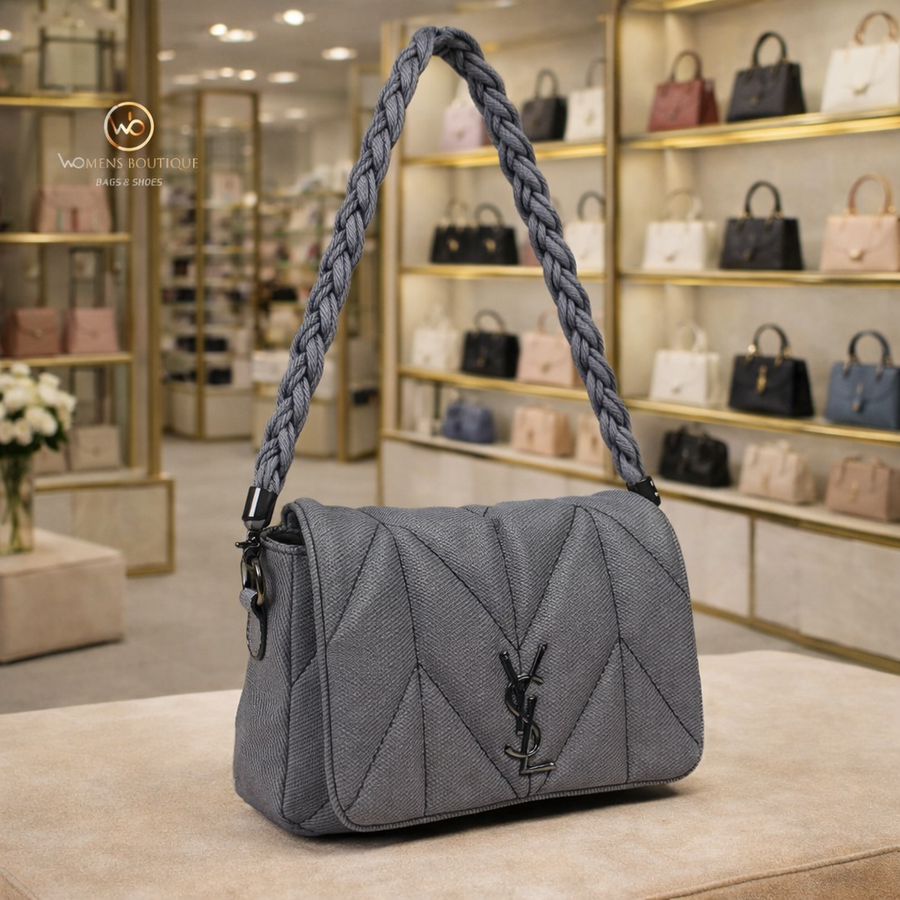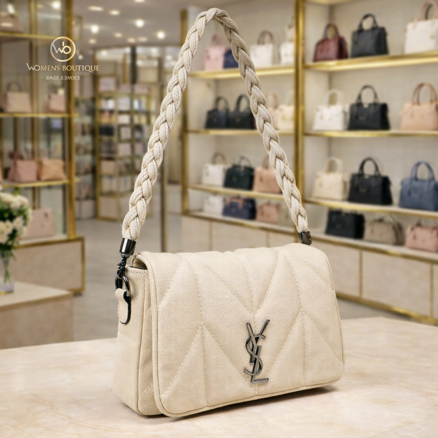 حقيبة بتصميم عصري مبطن بنقشة أنيقة يديكي إحساس بالفخامة والبساطة في نفس الوقت. بتتميز بسلسلة يد مضفرة مريحة وعملية، مع خامة عالية الجودة تعيش معاكي وتناسب كل خروجاتك سواء كاجوال أو شيك. حجمها المثالي يخليها عملية تشيل أساسياتك بكل سهولة بدون ما تكون bulky.