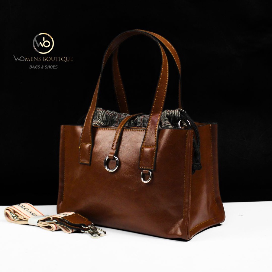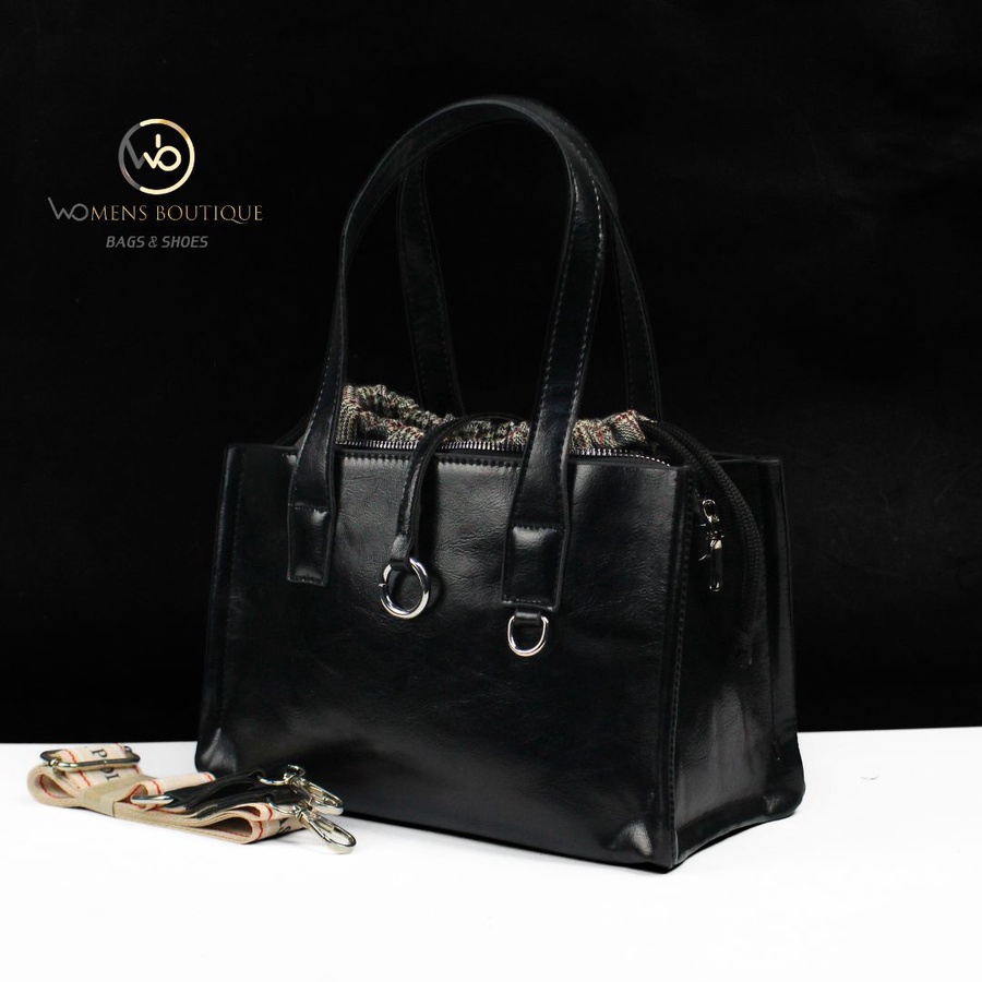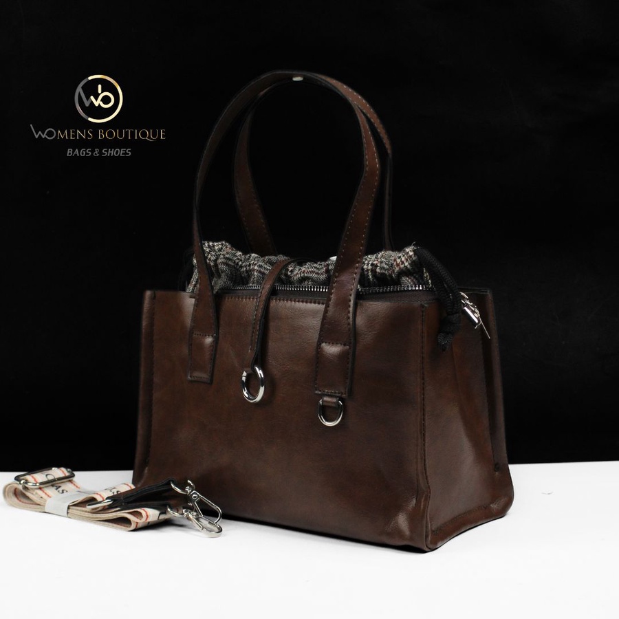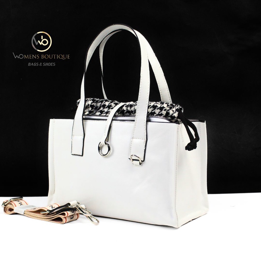 ✨ الوصف: استمتع بالأناقة اليومية مع هذه الحقيبة العملية المصنوعة من خامة جلدية تاعمه مجزعة تضيف لمسة فاخرة إلى إطلالتك. تصميمها الهيكلي العصري مزود بسحّابات فضية أنيقة، مثالية للمرأة التي تبحث عن التميز في التفاصيل.