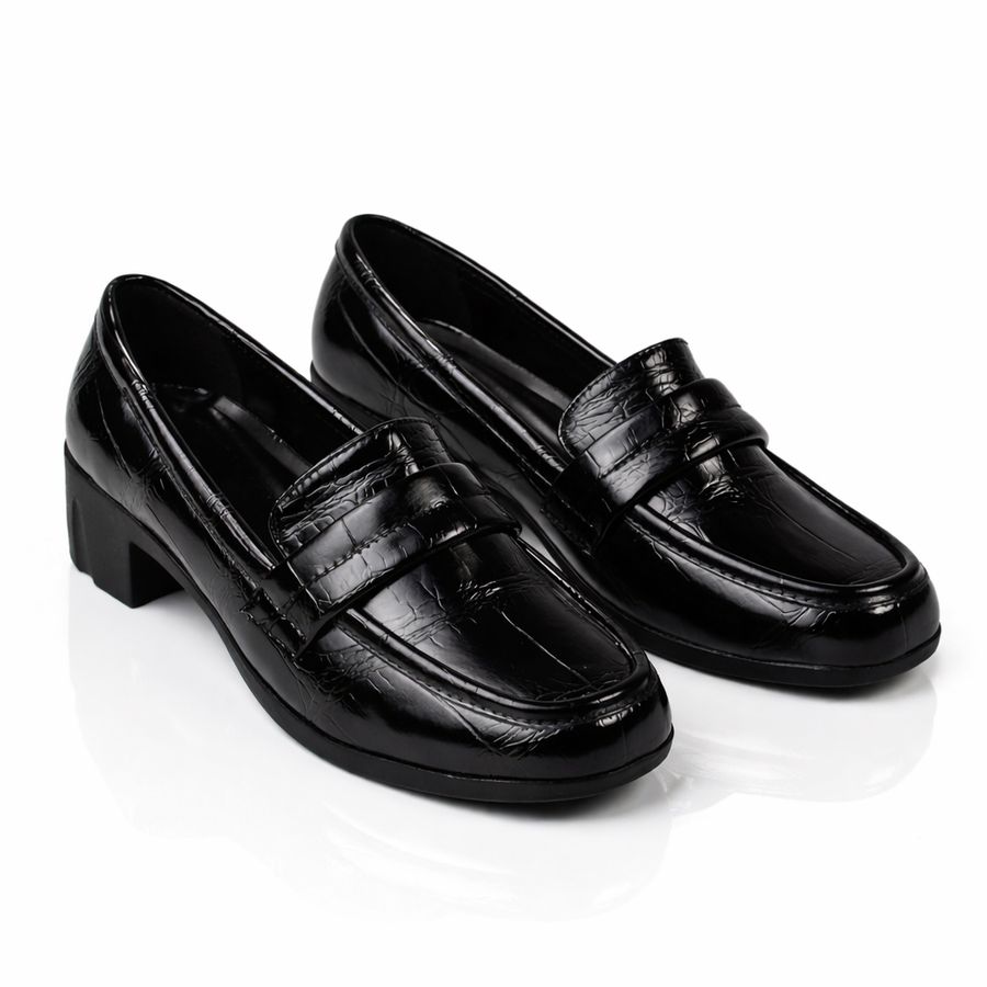 Elegant women’s loafer crafted from premium Italian crocodile-textured leather with a refined glossy finish.