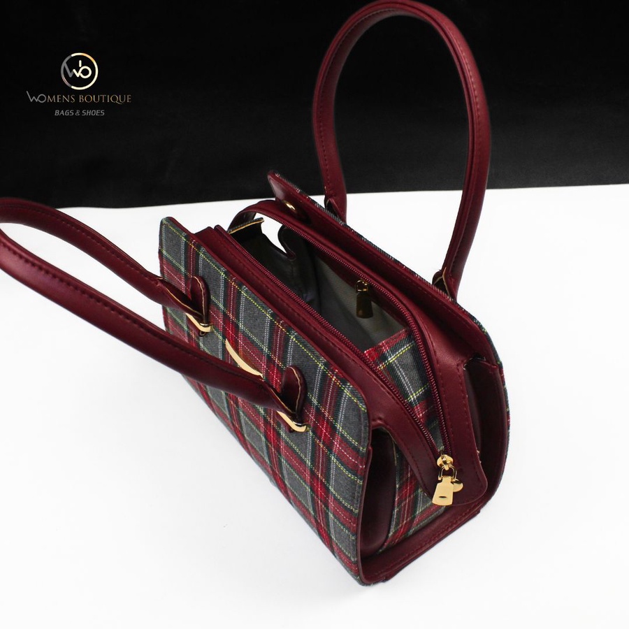ج.ماستقبلي الموسم الجديد بإطلالة دافئة ومميزة مع حقيبة "سكوتش". تتميز هذه الحقيبة بتصميمها البريطاني الكلاسيكي بنقشة الكاروهات (Plaid) التي لا تنتهي موضتها أبدًا. تجمع الحقيبة بين القماش المنسوج الفاخر والجلد الناعم في التفاصيل والمقابض، مما يمنحها مظهرًا يجمع بين العصرية والأصالة.