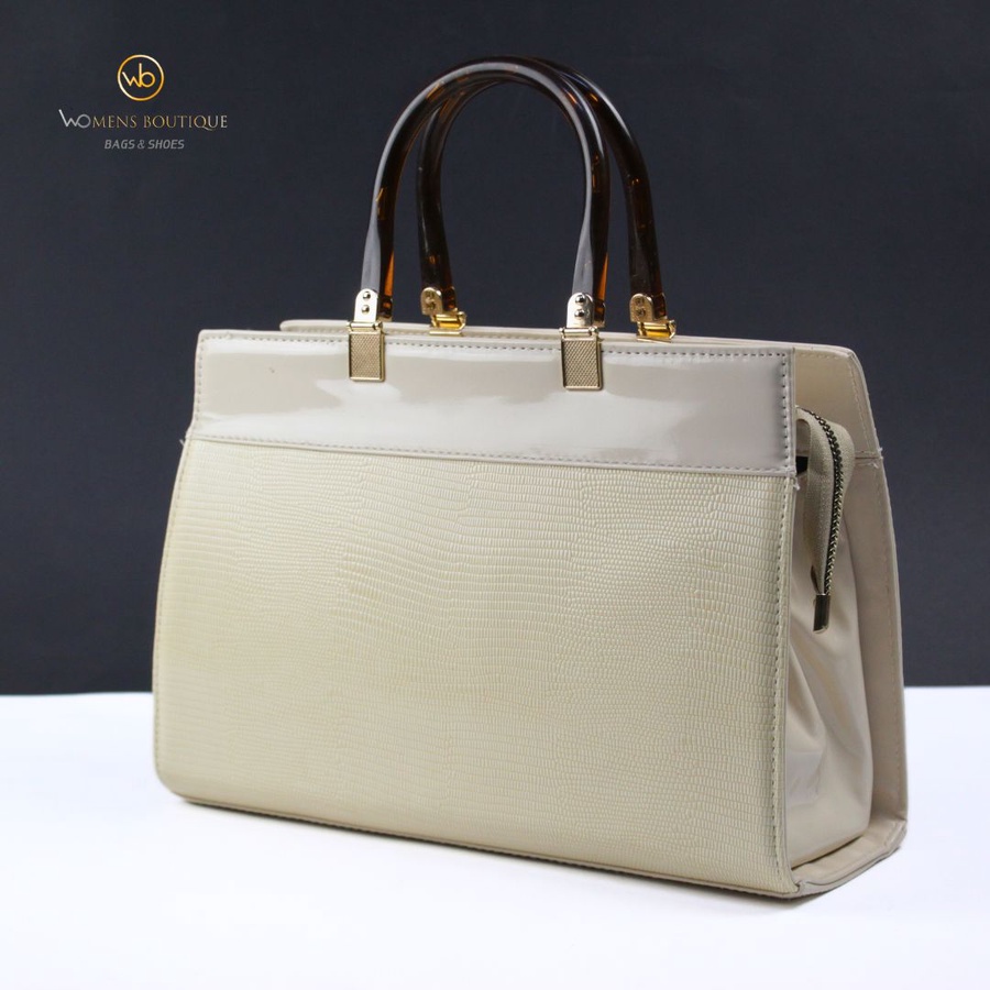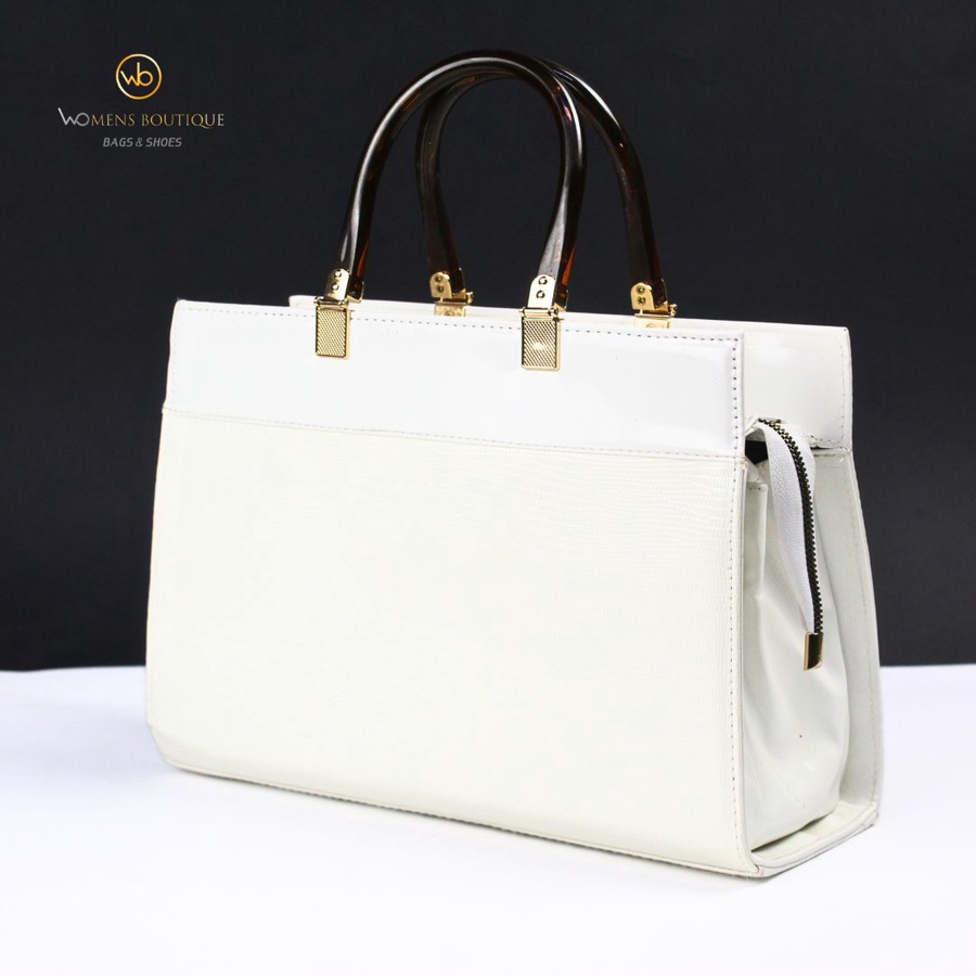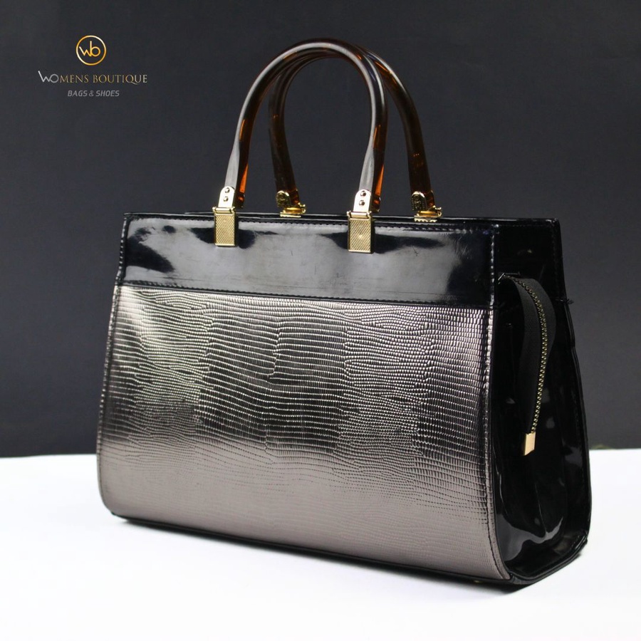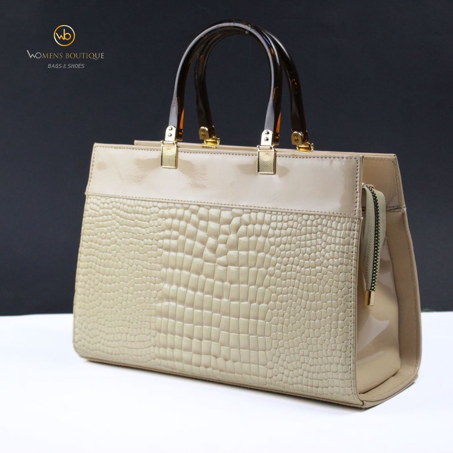 ج.محقيبة نسائية فاخرة مصنوعة من خامة جلد إيطالي لامع، مدعّمة بنقشة سناك المميزة، تجمع بين الفخامة والجرأة في تصميم واحد. مثالية للإطلالات الرسمية والكاجوال، بحجم عملي يليق بكل مناسبة.