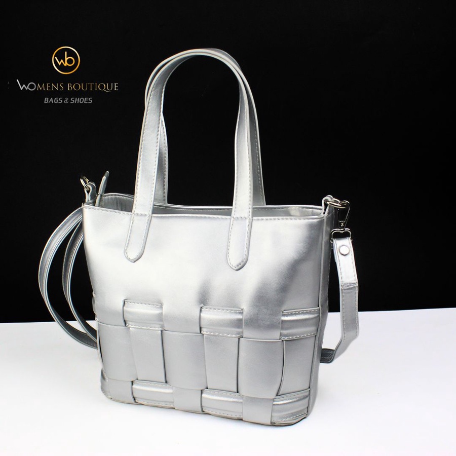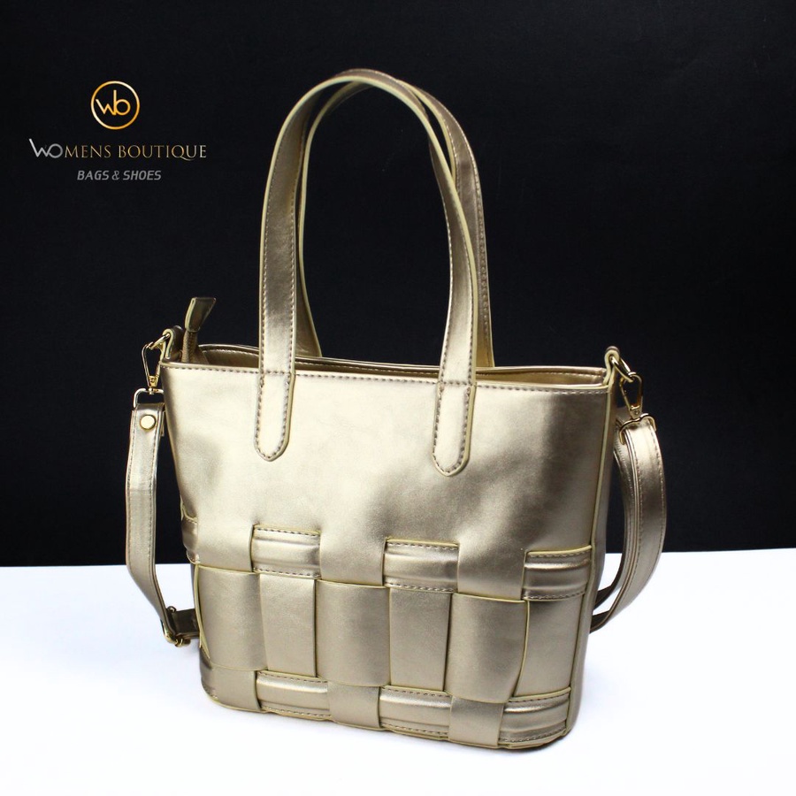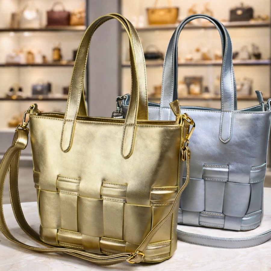 ج.ماختاري الأناقة العصرية مع حقيبة Shine Tote Bag المصممة بتفاصيل مضفرة مميزة ولمسة لامعة جذابة. الحقيبة تجمع بين الفخامة والعملية، لتكون اختيارك المثالي لكل يوم سواء في الشغل أو الخروجات. تصميمها العصري مع الألوان المتنوعة (ذهبي – فضي – بيج) يخليها قطعة أساسية في دولابك.